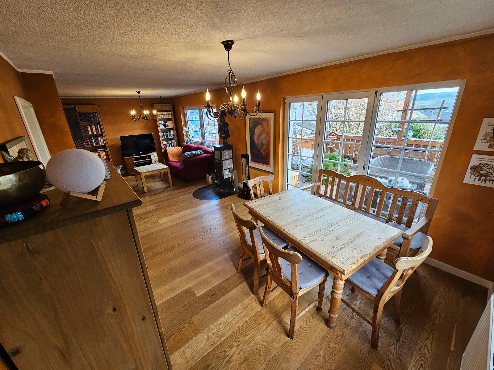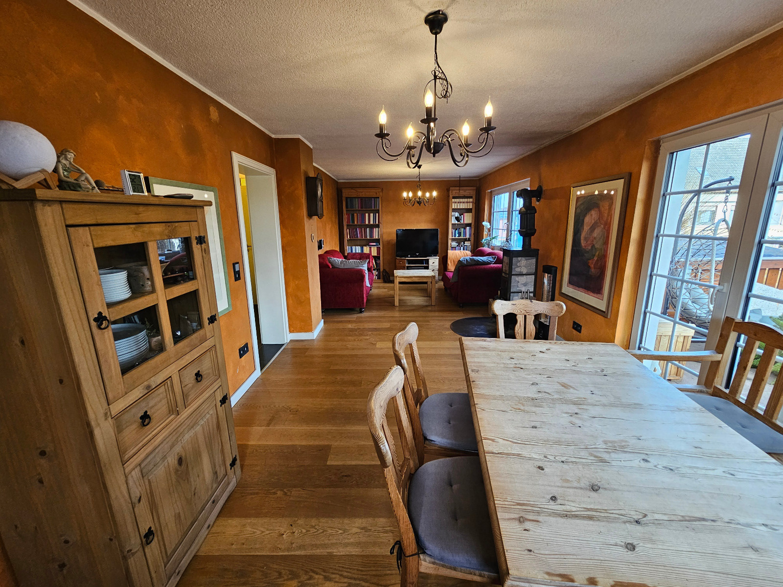 Wohnzimmer mit Zugang zur überdachten Terrasse