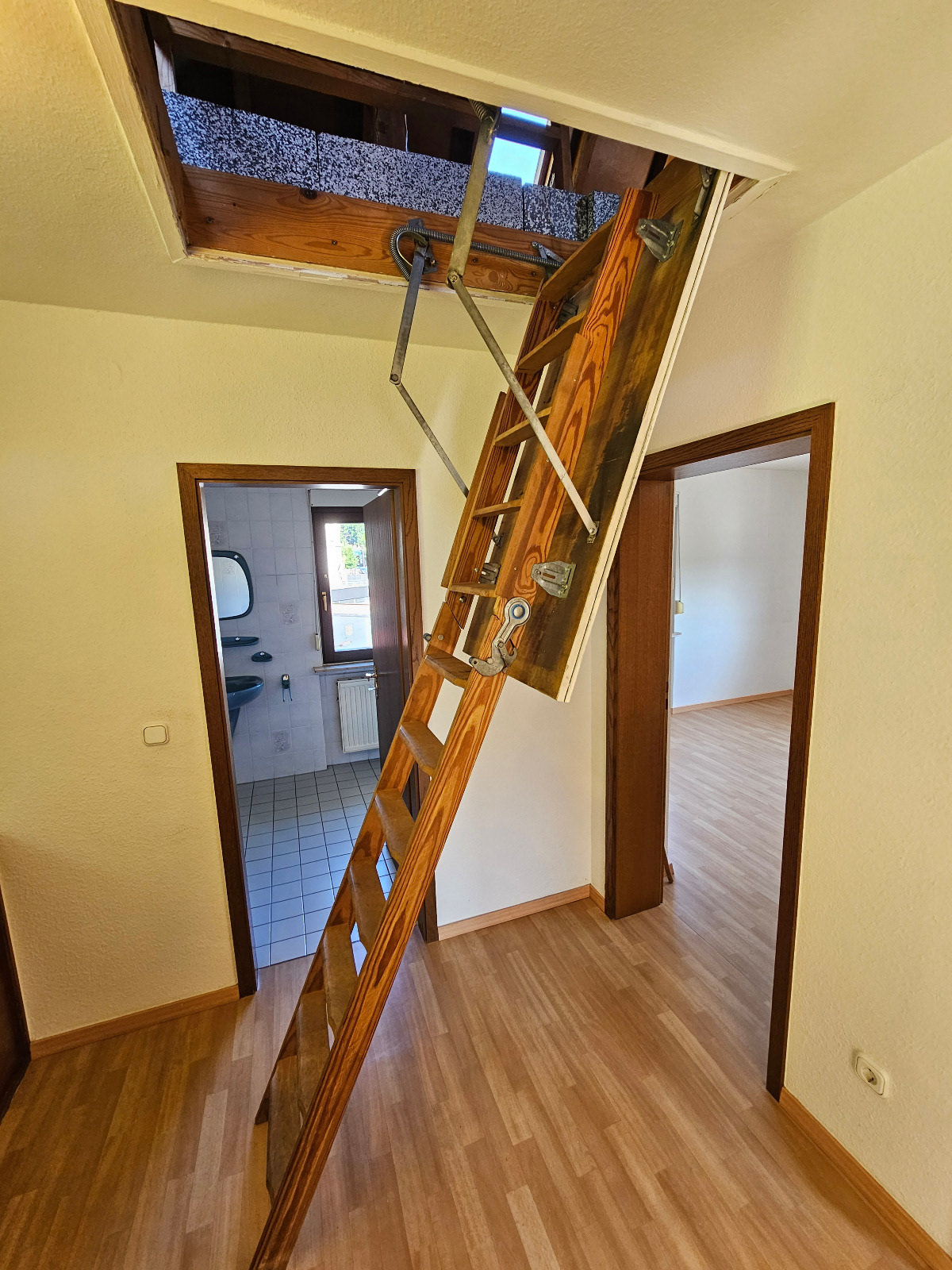 Obergeschoss (65,63 m²): 3 Zimmer mit Laminat, Tageslichtbad mit Wanne, Dusche & WC (Fliesen)
